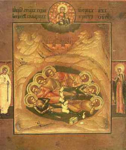 Μετά 194 χρόνια, ἐπί Θεοδοσίου τοῦ Μικροῦ, στήν Ἔφεσο κάποια αἵρεση διακήρυττε ὅτι δέν ὑπάρχει ἀνάσταση νεκρῶν. Ἐκείνη, λοιπόν, τήν ἐποχή, κάποιο παιδί στήν ἀγορά τῆς Ἐφέσου ψώνισε ψωμί μέ τό νόμισμα τῆς ἐποχῆς τοῦ Δεκίου. Αὐτό προκάλεσε ἔκπληξη. Πῆραν, λοιπόν τό παιδί καί τό ἀνέκριναν. Κατόπιν, πῆγαν στή σπηλιά καί βρῆκαν ζωντανά καί τά ὑπόλοιπα παιδιά.