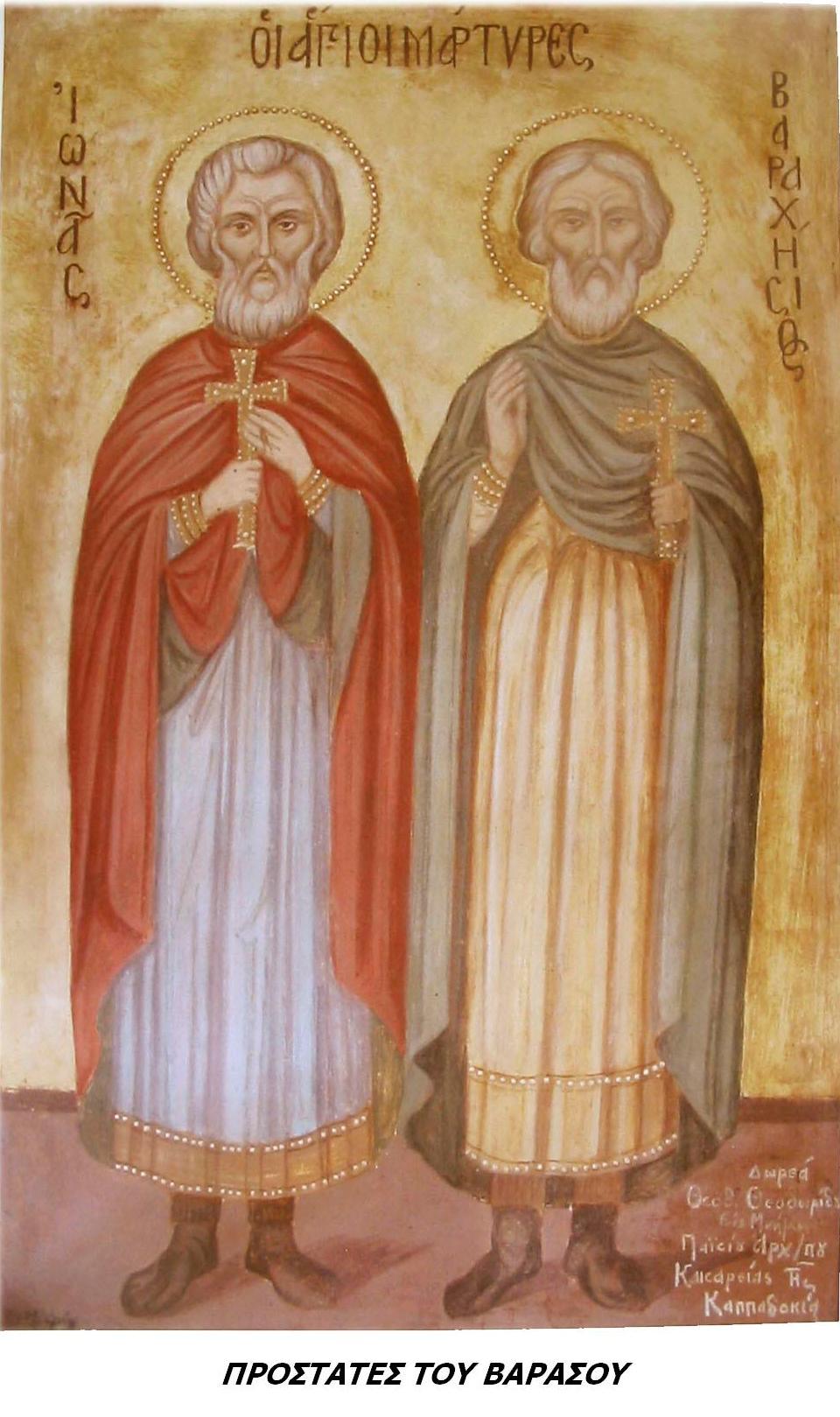 Στήν συνέχεια ἔκοψαν τά δάκτυλα τῶν χεριῶν καί τῶν ποδιῶν τοῦ Ἁγίου Ἰωνᾶ καί τόν ἔδεσαν σφικτά σέ δένδρο. Ἐκεῖ τόν πριόνισαν στή μέση καί τόν ἔριξαν σέ λάκκο. Τόν Ἅγιο Βαραχήσιο, ἀφοῦ τόν ἔσυραν γυμνό στά ἀγκάθια, τόν ἔριξαν σέ λάκκο καί ἔχυσαν βραστή πίσσα ἐπάνω στόν φάρυγγά του, καί ἔτσι τελειώθηκε ὁ βίος του.