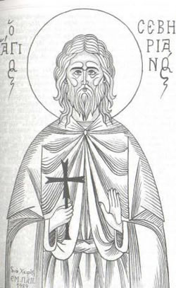 Ὡς εὐκλεής, τῆς εὐσεβείας τρόφιμος, μαρτυρικῶς, ἐφαίδρυνας τόν βίον σου, Σεβηριανέ θεόσοφε, Ἀθλοφόρων ἀκροθίνιον· ἐνθέοις γάρ ἐκλάμπων κατορθώμασι, τοῖς στίγμασι τοῦ Λόγου κεκαλλώπισαι, πρεσβεύων σωθῆναι τάς ψυχάς ἡμῶν.