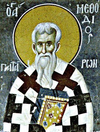 ἶναι ἄγνωστο ἀπό ποῦ καταγόταν ὁ Ἅγιος Ἱερομάρτυς Μεθόδιος, ὁ ὁποῖος ἄθλησε κατά τούς χρόνους τοῦ αὐτοκράτορος Διοκλητιανοῦ (284 – 305 μ.Χ.). Ὑπῆρξε κατ’ ἀρχάς μέν Ἐπίσκοπος τοῦ ἐν Λυκίᾳ Ὀλύμπου, ἔπειτα δέ Ἐπίσκοπος Τύρου (τῆς Φοινίκης), κατ’ ἄλλους δέ Ἐπίσκοπος Φιλίππων τῆς Μακεδονίας. Τό ἀναφερόμενο ὅτι διετέλεσε Ἐπίσκοπος Πατάρων εἶναι ἀναληθές, προελθόν ἐκ τοῦ περί Ἀναστάσεως διαλόγου του, ὁ ὁποῖος ἔλαβε χώρα στά Πάταρα. Διαπρεπής ἀρχιερεύς καί πλατωνικός φιλόσοφος, διακρινόταν γιά τήν ἐμμονή του στήν πίστη καί τήν παράδοση καί κατατάσσεται στούς κορυφαίους θεολόγους τῆς ἐποχῆς του, ἀγωνισθείς σφοδρῶς κατά τοῦ Ὠριγένους καί τῶν ὀπαδῶν αὐτοῦ. Κατά τόν ἐπί Διοκλητιανοῦ ἐναντίον τῶν Χριστιανῶν κηρυχθέντα διωγμό, συνελήφθη καί ὑπέστη μαρτυρικό θάνατο, τό 311 μ.Χ., στή «Χαλκίδα τῆς Ἑλλάδος καί οὐχί τῆς Συρίας», κατά νεώτερες ἐπιστημονικές ἔρευνες. Κατ’ ἄλλους, ἀσθενῶν, ἐφονεύθη διά μαχαίρας ὑπό ὑπηρέτου, τόν ὁποῖο οἱ Ὠριγενιστές εἶχαν δώσει σέ αὐτόν. Ὁ ὑμνογράφος Θεοφάνης στόν ἑορταστικό Κανόνα τῆς μνήμης τοῦ Ἁγίου (Ὠδή Γ’, τροπ. 1) ἐκφράζεται ὡς ἑξῆς ἐπί τοῦ προκειμένου γιά τόν Μεθόδιο: «Ἐπιπολάζουσαν ἰδών, τήν Ὠριγένους ἀπάτην, ὡς ὑπάρχων ἄριστος ποιμήν, τῷ θείῳ πυρί συντόμῳ ἔφλεξας, πᾶσαν ἐκείνου τήν ἀχλύν, τήν ἀπαστράπτουσαν αἴγλην, ἅψας τῆς σοφίας σου, θεόληπτε». Γιά τό μαρτυρικό του θάνατο ἐκφράζεται (Ὠδή Α’, τροπ. 3) κατ’ αὐτόν τόν τρόπο: «Στέφει τοῦ μαρτυρίου, ἱερωσύνης τε μύρῳ, παμμάκαρ κοσμούμενος, δι’ ἀμφοτέρων ἤστραψας, ὅθεν τῆς ἀληθεστάτης, καί θεοειδοῦς κληρουχίας τετύχηκας».