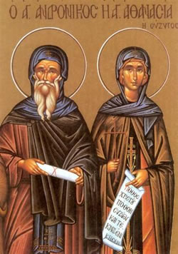 Ἀπό ἐκεῖ πῆγαν στήν Αἴγυπτο, ὅπου μέ κοινή ἀπόφαση ἔγιναν μοναχοί καί μπῆκαν σέ μοναστῆρι. Ὁ μέν Ἀνδρόνικος πῆγε στή Μονή τοῦ ἀββᾶ Δανιήλ, ἡ δέ γυναῖκά του Ἀθανασία στήν γυναικεία Μονή τῶν Ταβεννησιωτῶν.